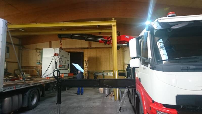 Bei dem Maschinentransport wurde eine 9-Tonnen-Maschine in beengten Verhältnissen versetzt.